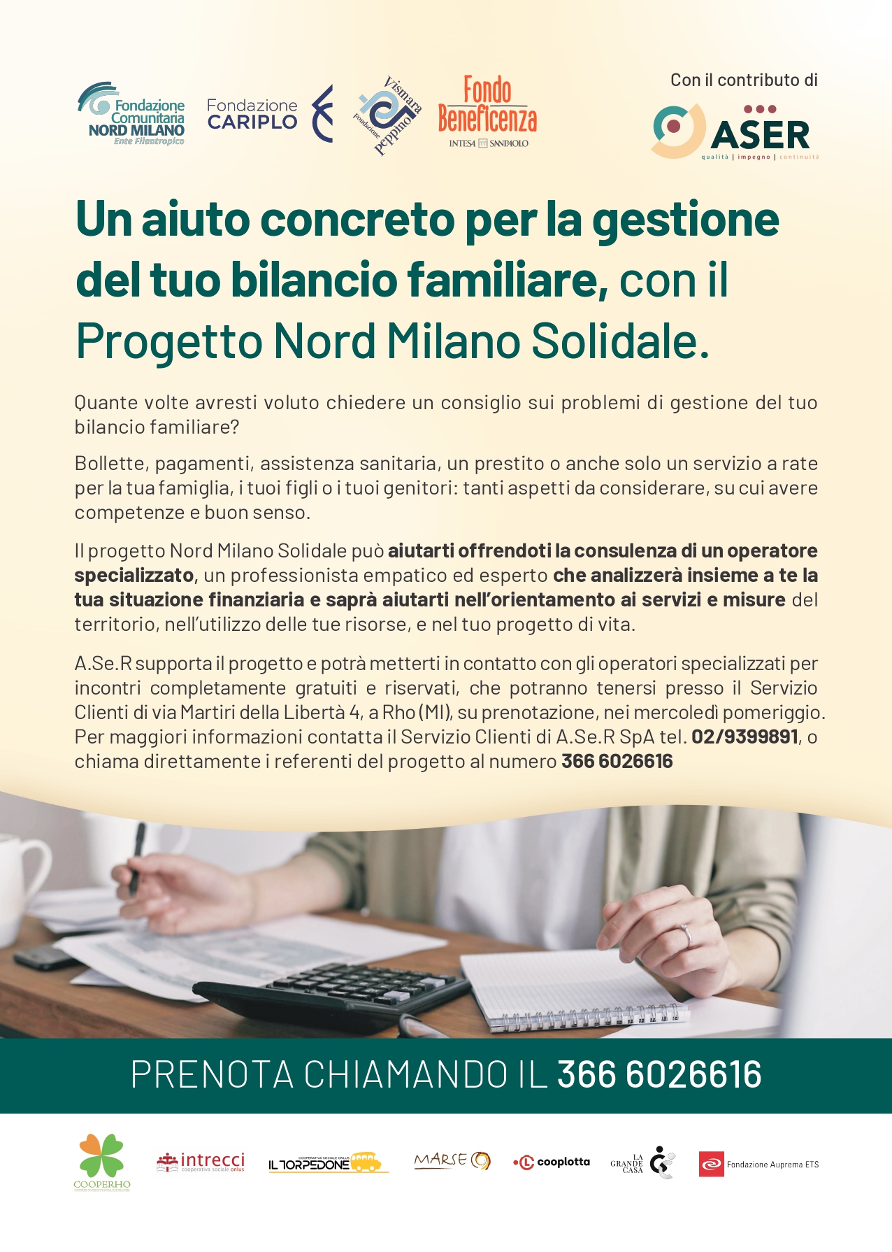 A.Se.R sostiene il progetto e potrà metterti in contatto con gli operatori specializzati per incontri completamente gratuiti e riservati, che potranno tenersi presso il Servizio Clienti di via Martiri della Libertà 4, a Rho (MI), su prenotazione, nei mercoledì pomeriggio.